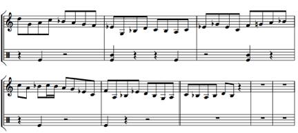 However, the consequent contains a Dorian tetrachord, with a B passing tone added: