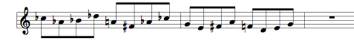 These complex double-time statements continue in the bridge and represent the height of the story. The opening melody of the bridge moves through several unusual tonal areas which I hear as: