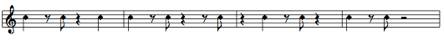 Rhythm of the clave-like pattern at measure 11 of "52nd Street Theme #275"