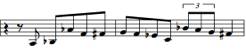 clave pattern in above phrase, from the middle of second measure of sub-section 2b (0:49):