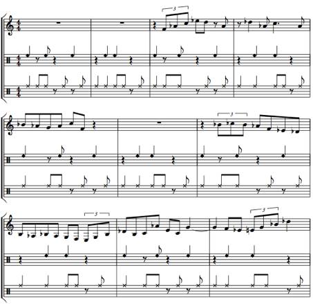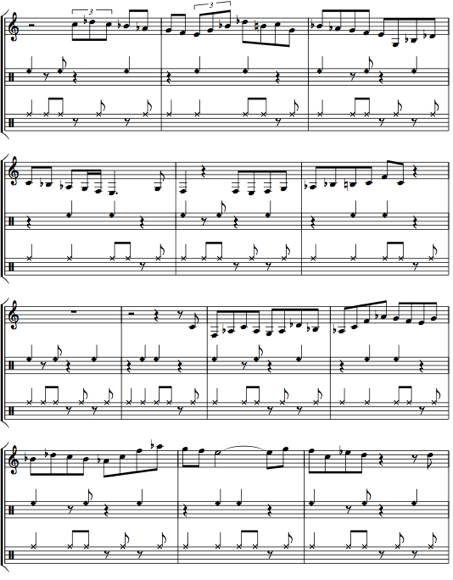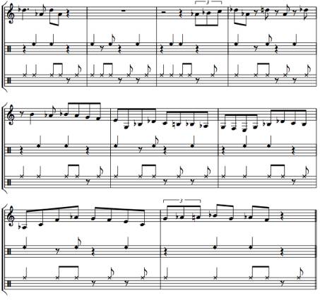 Melody of "Ko-Ko", trumpet, sax, snare & bass drum: