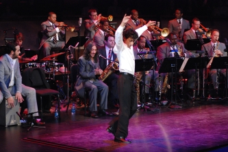Next was Jason and Jaysonie, an homage to Marsaliss nephew and Anuas daughter, a jump swing number that brought the tap dancers back on stage, and included one of the evenings musical highlights. Chano traded 24-bar riffs at the keyboard with Dan Nimmer, JALCOs phenomenally gifted 25-year-old pianist, to great applause.