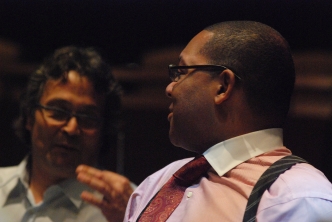 Riley was joined onstage during the last movement by tap dancers Jared Grimes and DeWitt Fleming, who amazed the crowd with agility as well as musicality. Of the two, Fleming is the more acrobatic, and Grimes more melodic, at one point mesmerizing the audience with a solo performed only with the heel and toe of one foot.